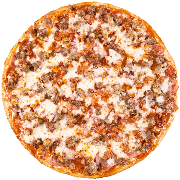 View Details keyboard_arrow_up Close Details Order Now Our Mighty Meaty specialty pizza is the mightiest meaty meat pizza around these parts. Loaded up with pepperoni, ham, bacon, hamburger, sausage, & mozzarella cheese.